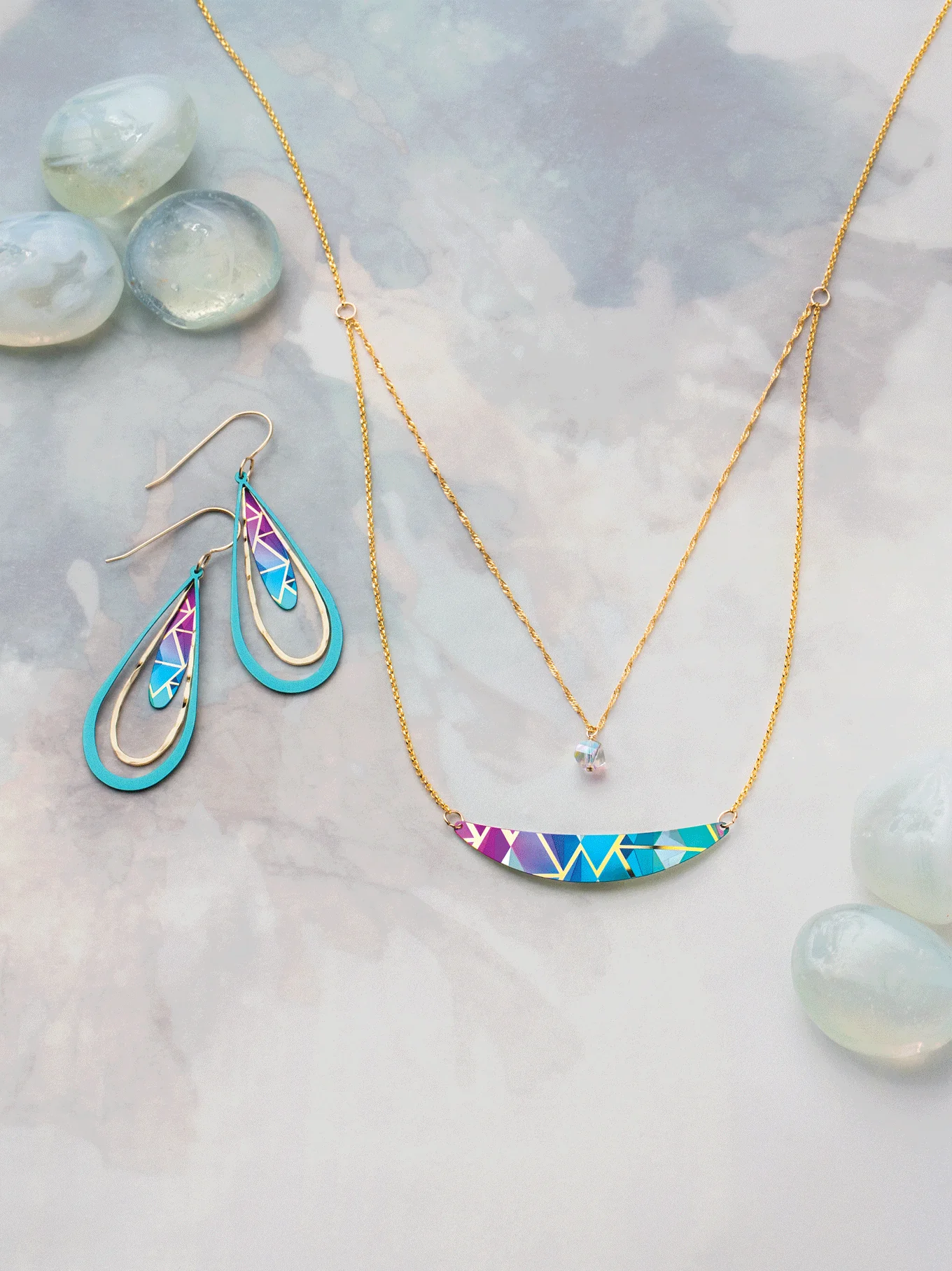 Doubled up for double the style, our Ada Necklace is hassle-free layered perfection. A niobium crescent in a geometric, modern-cut, iridescent Austrian crystal hanging from a rope chain. The combination makes for an understated, yet exciting addition to any wardrobe.