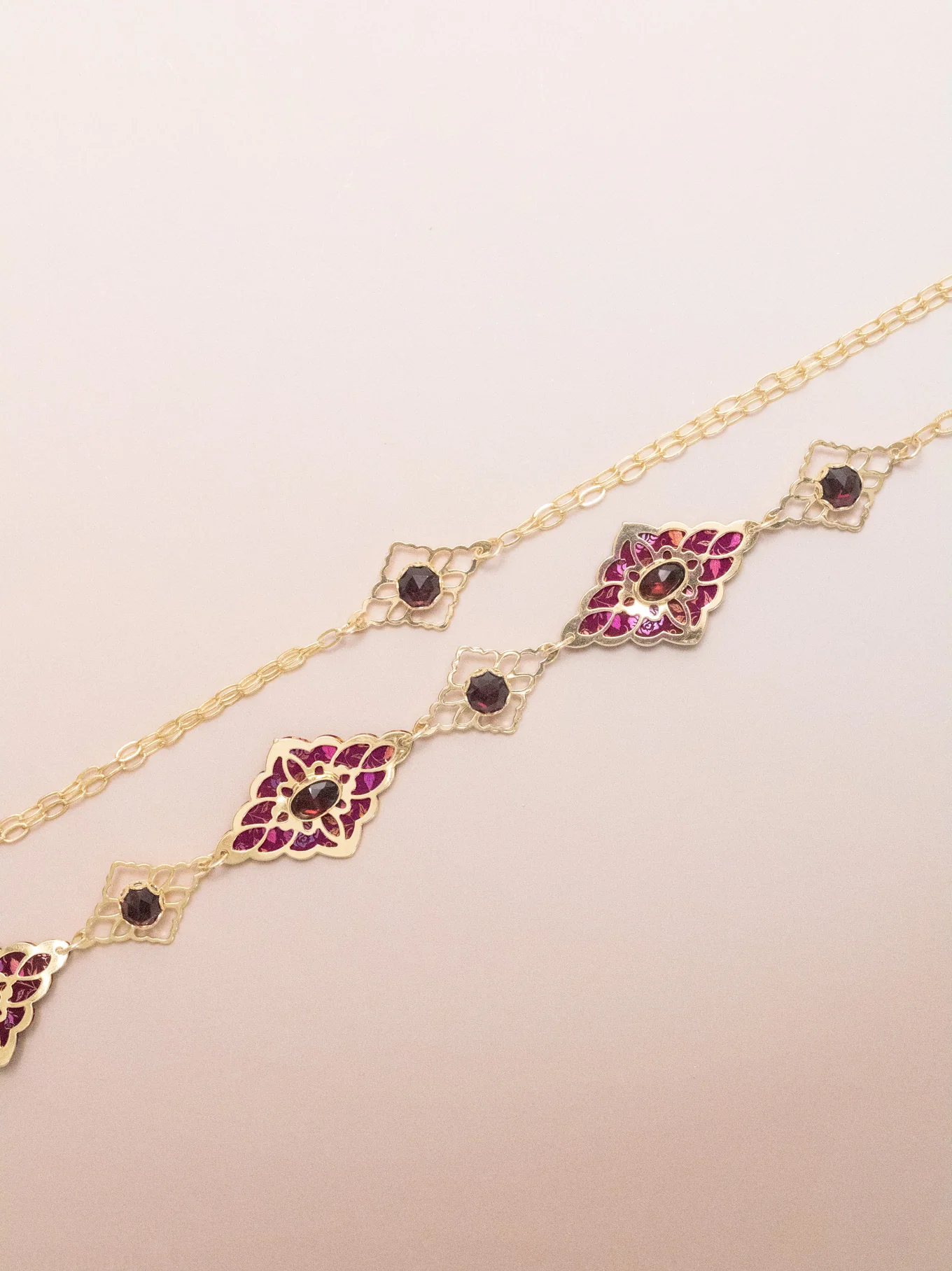 Oh, you like just a hint of sparkle? We guessed right. With its slim chain and garnet-centered filigree, the Esme Bracelet brings the perfect touch of color and shine. Soft enough for stacking, strong enough to stand beautifully alone.
