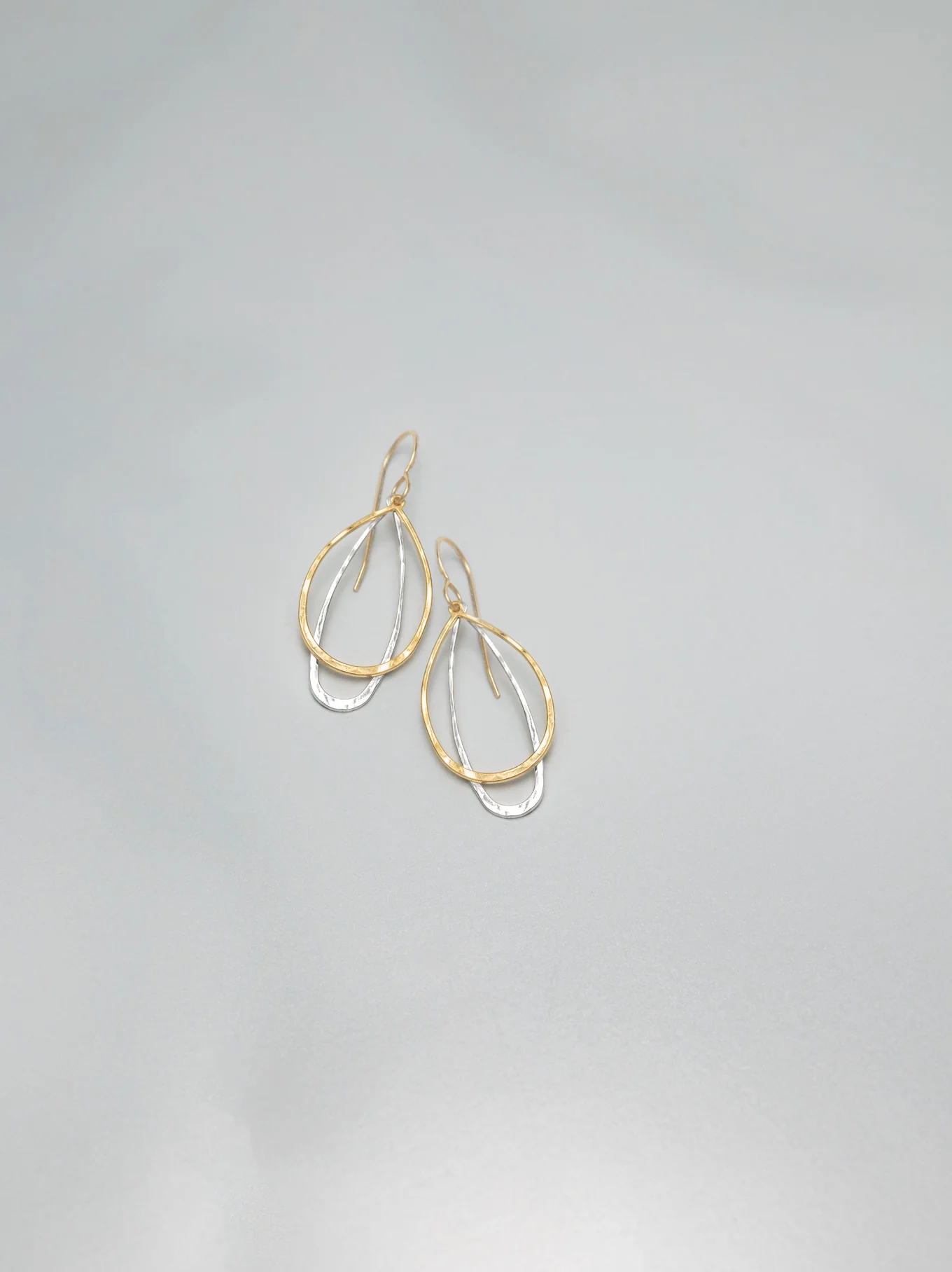 Our In the Loop Earrings feature gold and silver plated drop hoops in modern silhouettes. Light and ultra-thin, these mixed metal drop earrings make a statement without adding any weight. Whether styled for day or night, these earrings are sure to turn heads.