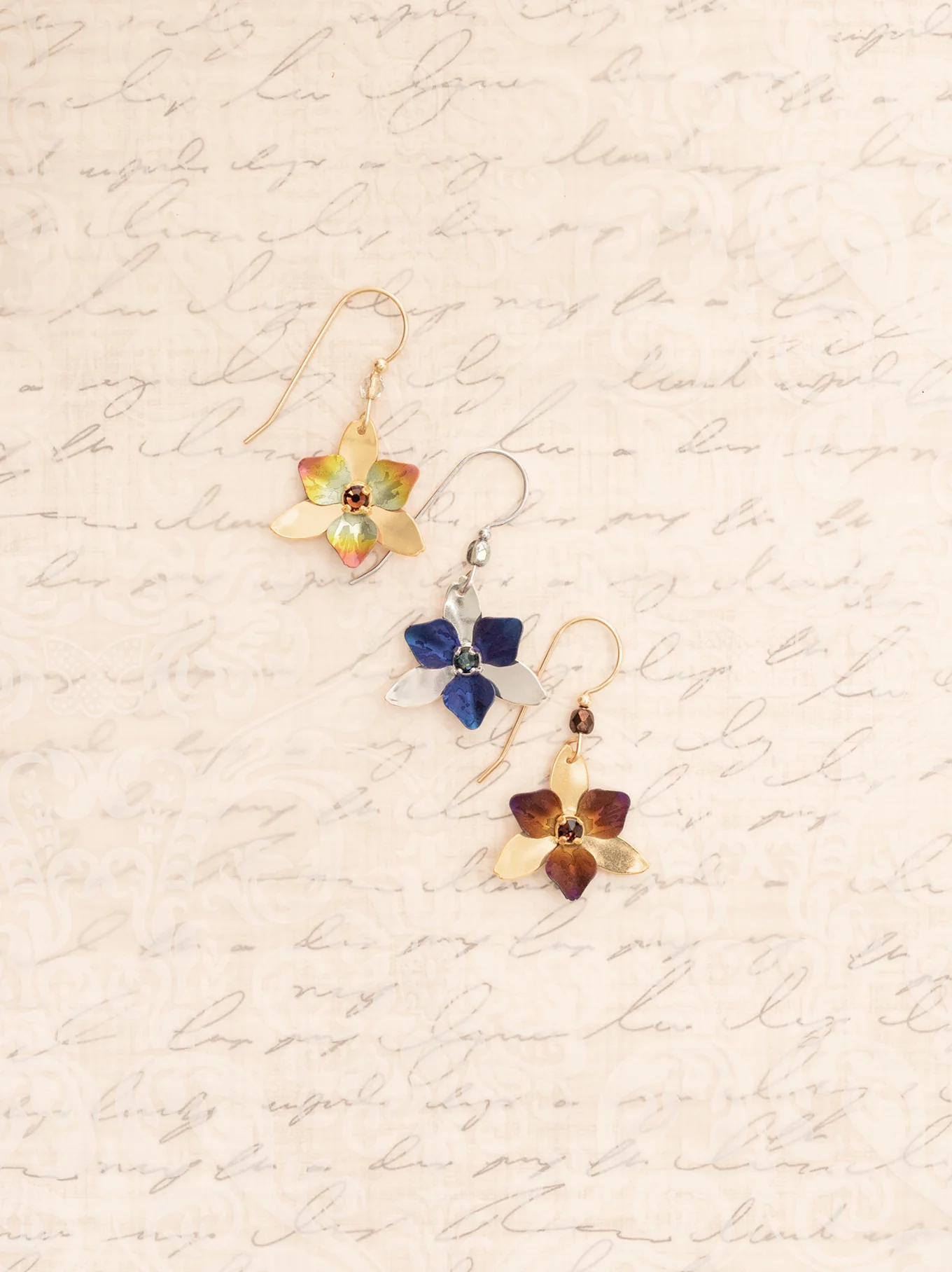 In a forest of florals, sweet Orla shines the brightest. A little woodsy, a lot of wonderful, with our famous niobium blooming a deep and hypnotic hue. Set against shimmering silver or gold and sparked with an Austrian crystal, these pretty petals are begging to be picked.