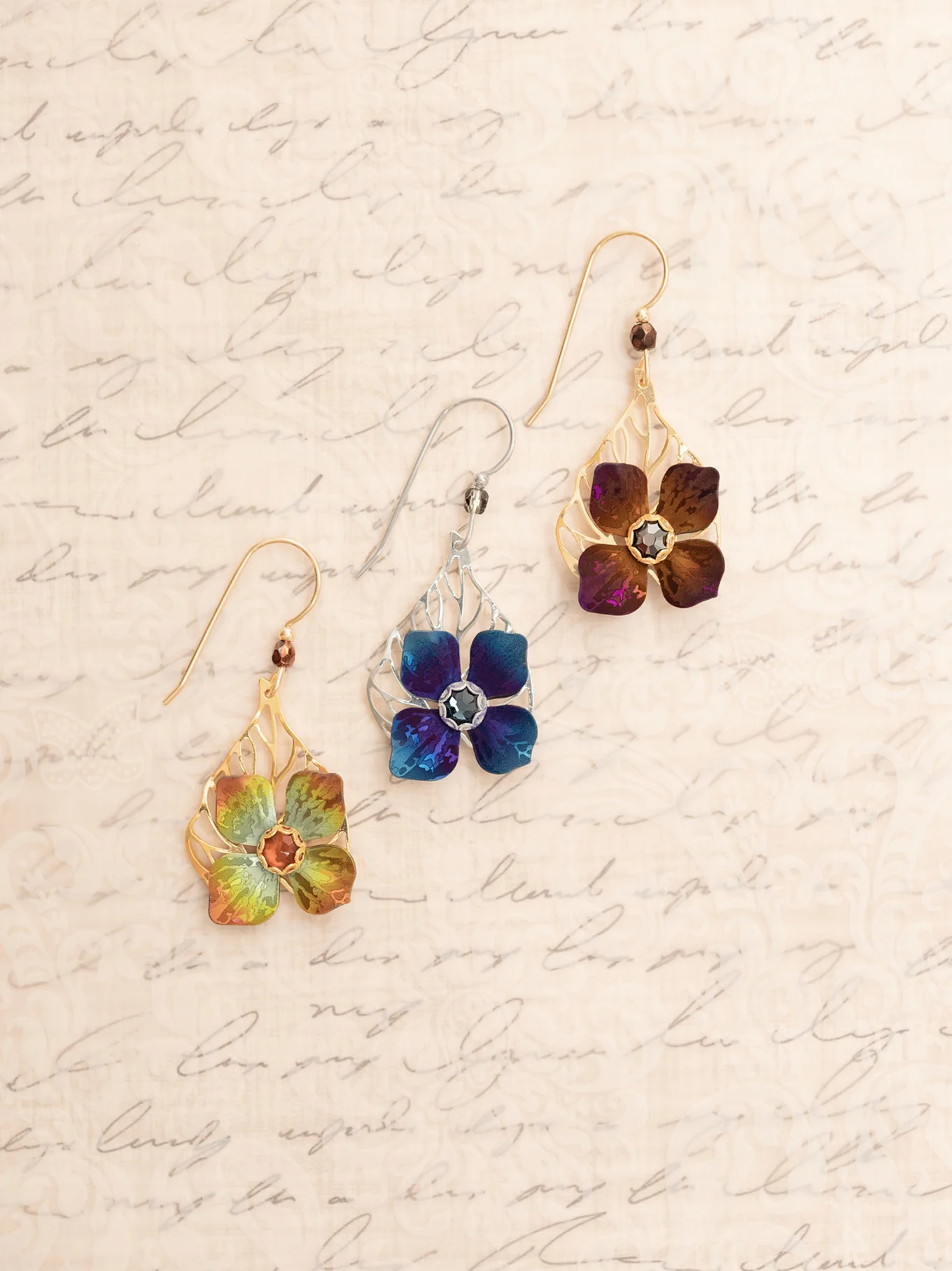 Devotees of forest wonder and whimsy will be quick to see the Seren Earrings' enchanting possibilities. By sunlight or starlight, their delicate elegance and ombre hues make them an easy choice for casting a spellbinding statement. From the tips of the pointed leaves to the spark of the colored glass to the shimmering metal backdrop that cradles this ethereal design, every detail is a love song to the beauty of nature.